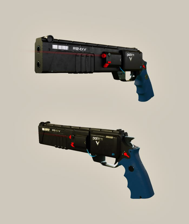 소유 무기 및 기술: 아래와 같은 디자인의 검은색이 매인인 쌍권총을 사용. 특수하게 만들어진 물건이며 단순히 총알만 나가는 것이 아닌 테이저 건 기능을 비롯하여 연막 등등 다양한 기능이 탑재되어 있다. 또한 쌍권총의 단점이라 할 수 있는 정밀 조준, 반동 등을 확실하게 줄였다.